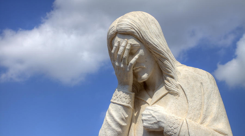 Socha držící se za hlavu - facepalm